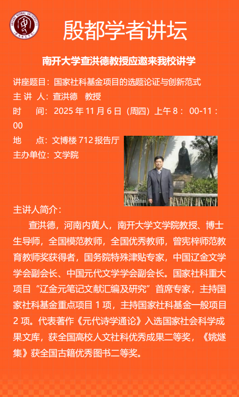 殷都学者讲坛海报—2025年第74讲